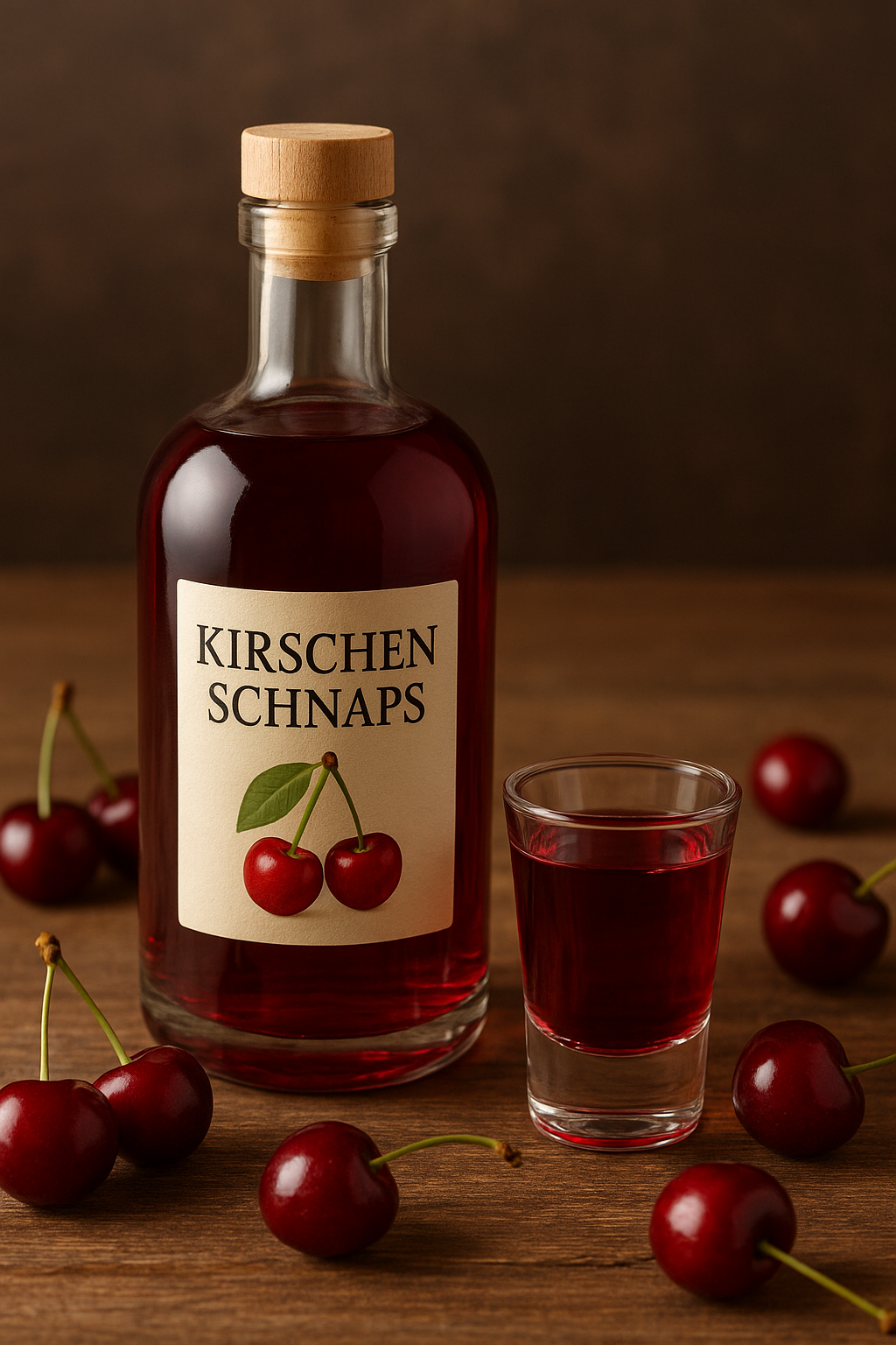 Der aromatische Kirschenschnaps besticht durch seinen fruchtigen Geschmack und hinterlässt ein angenehmes Brennen auf der Zunge.